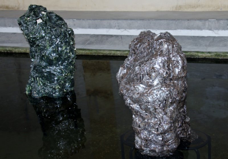 « Marc Simon invente une nouvelle mythologie à partir de ses lectures, de ses voyages, de son imaginaire, de ses connaissances en Histoire et en Histoire de l’art. Toutefois cette expression figurative évolue de nouveau vers des volumes simplifiés : des pièces plus sculpturales et moins narratives. »